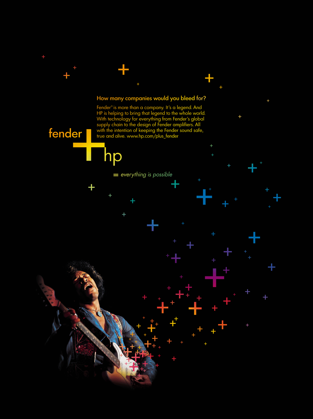 Two photos of Jimmy Hendrix were merged together. Some painting was needed to get the composition just right. The rainbow fountain effect was painted in Photoshop.